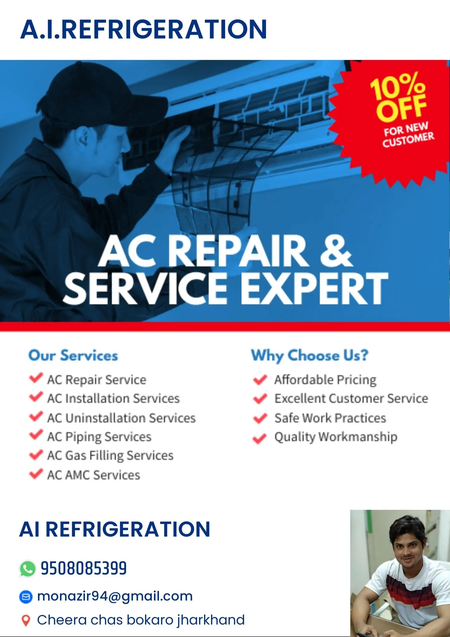 A.I. REFRIGERATION specializes in ac repair service for customers in Bokaro.