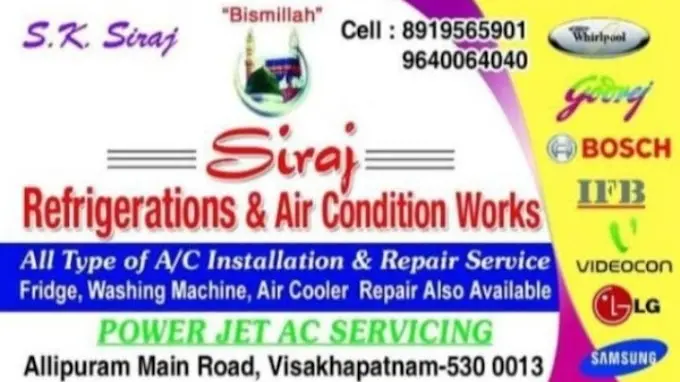 SIRAJ REFRIGERATION & AIR CONDITION WORKS specializes in ac repair service for customers in Vishakhapatnam.