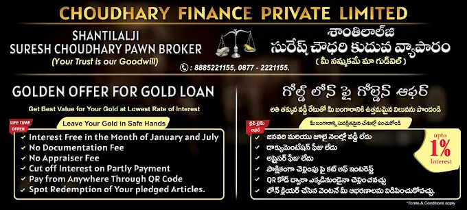 SS Choudhary PAWN BROKER specializes in loan providers for customers in Tirupati.
