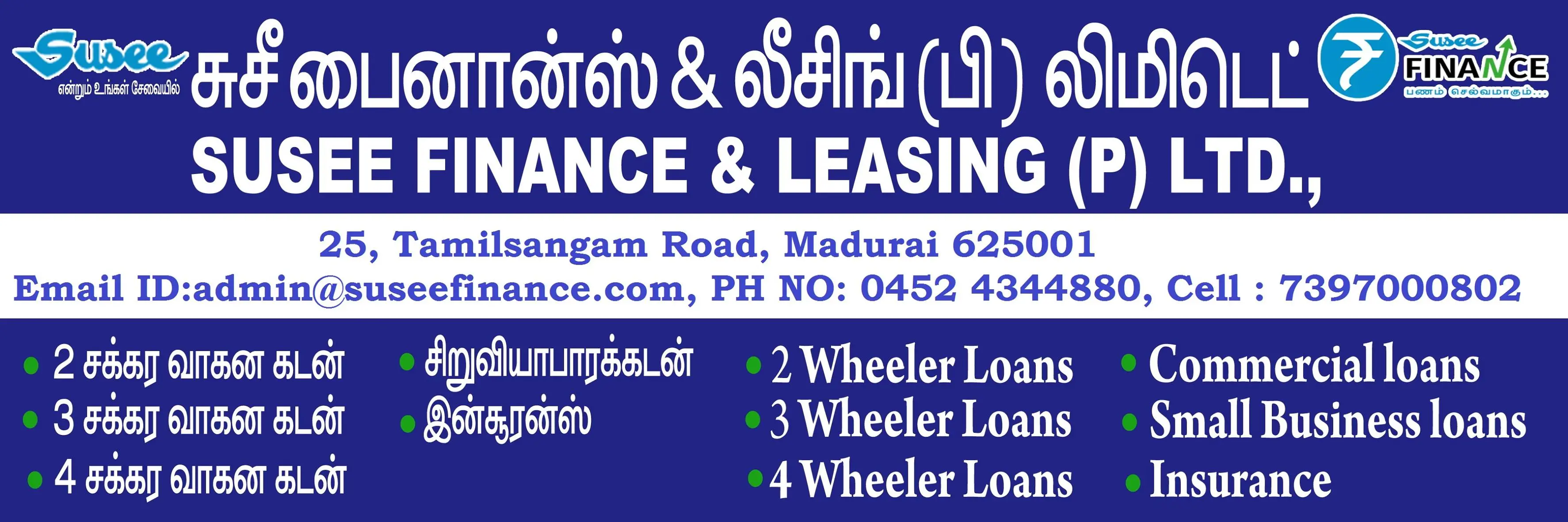 Susee Finance And Leasing PVT LTD specializes in loan providers for customers in Madurai.