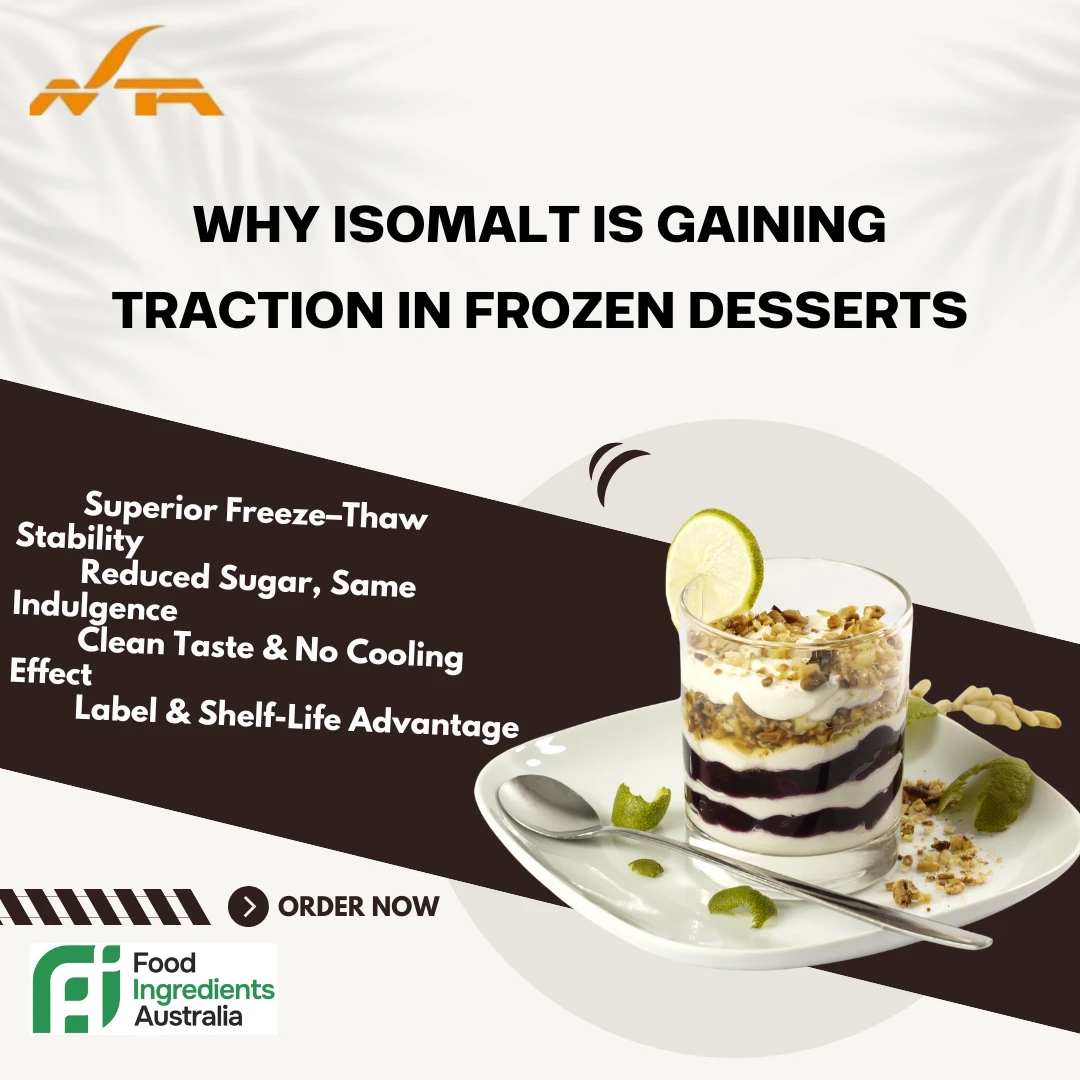 Isomalt is a premium, food-grade low-calorie sugar substitute widely used in food and beverages, especially in modern desserts and confectionery applications. Known for its stability, low hygroscopicity, and sugar-like functionality, Isomalt is the preferred ingredient for creating visually appealing, sugar-free, and reduced-calorie products.