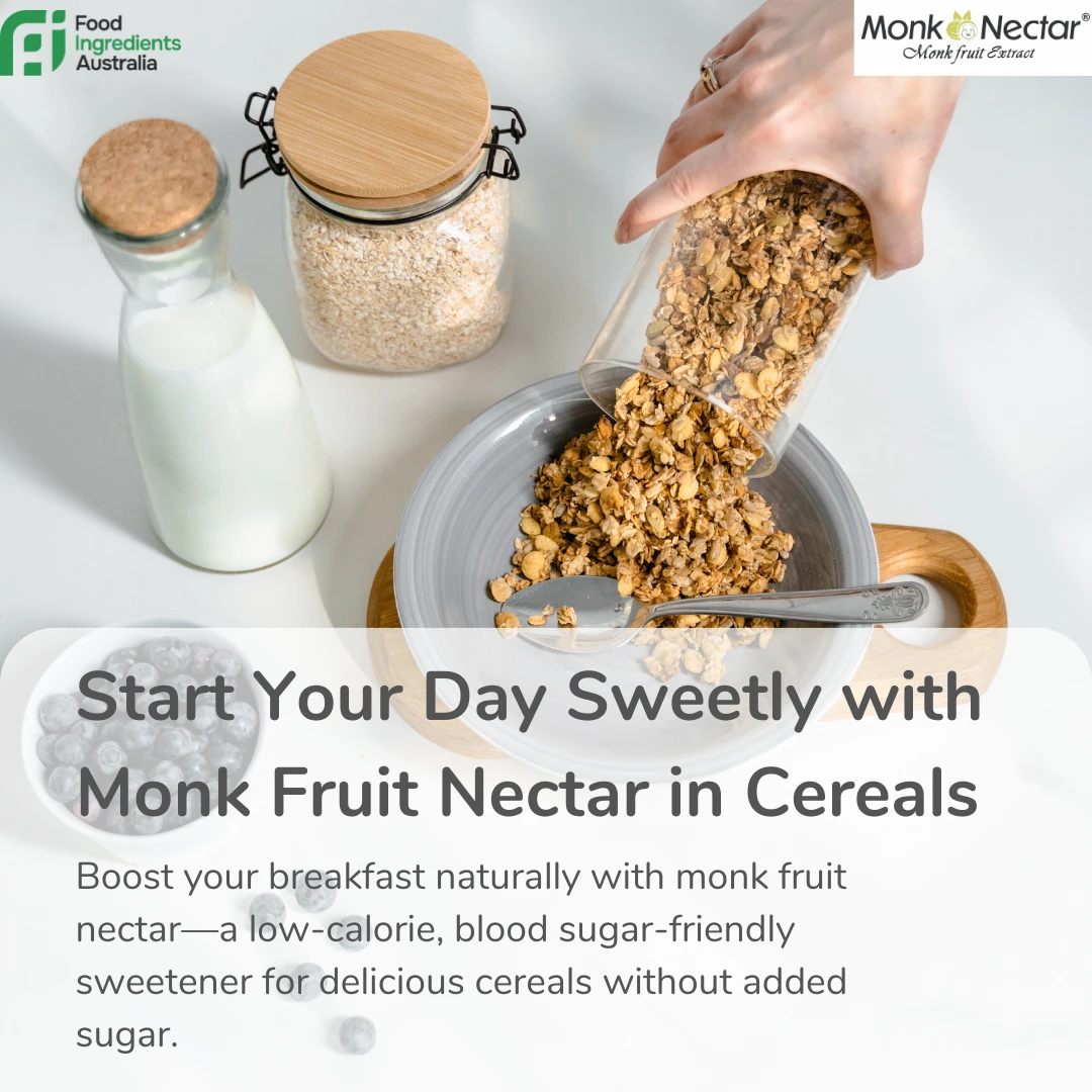 Monk Nectar® Monk Fruit Extract is a premium, natural zero-calorie sweetener designed for B2B applications across food and beverages, with growing demand in breakfast cereals and healthy grain-based products. Derived from monk fruit, this clean-label ingredient delivers intense sweetness without sugar, making it ideal for modern low-calorie and diabetic-friendly formulations.