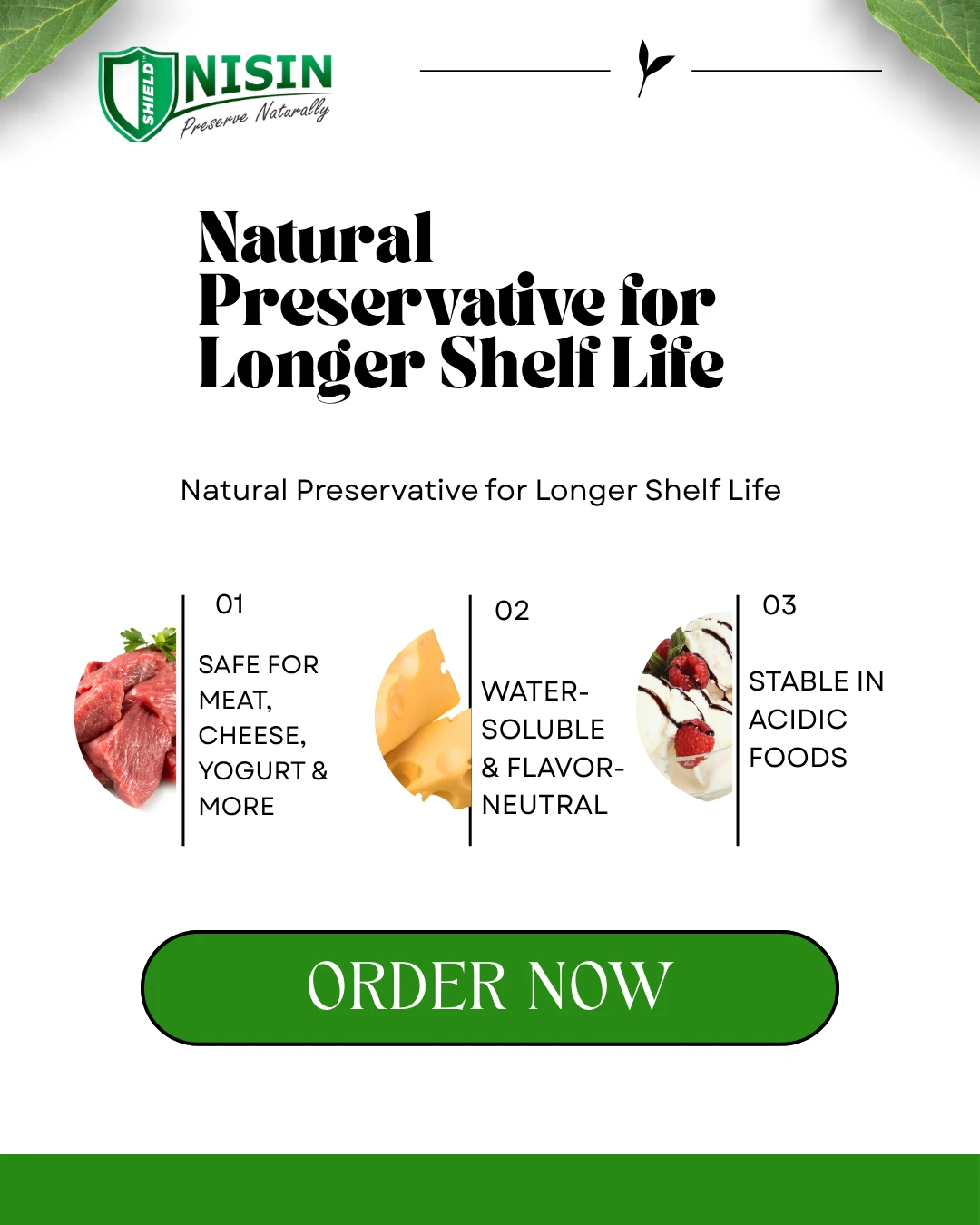 Nisin Shield empowers B2B food and beverage manufacturers to create safe, high-quality, and naturally preserved products with extended shelf life while maintaining taste and consumer appeal.